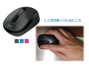 新年の仕事も始まり机の上がスッキリしていると妙に有線マウスのケーブルとマウスパットが気になり社内調査を行いました。目を付けたのが仕事の出来る上司の使っているワイヤレスマウスです。