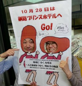 釧路って人口がどんどん減ってるし、街中を歩いてる人はまばらで、このマチはどうなっちゃうんだろうと思うことがあります。で も~、将来が不安だからって目先の自分の利益ばかりを考えない。どうしたら身近なあの人に喜んでもらえるかな、あの人の役に立つかなと考えて行動する。自 分の都合を一度手放して、相手の都合で考えてみる。そうすると、ちゃ~んと自分のところに『ふく』が帰ってくるというか、いい循環が起きる気がするんです よね~