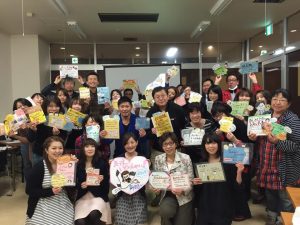 難しい専門用語は一切使わず、たくさんの事例を惜しみなく紹介してくれて、実際にPOPを書きながら、一人一人の質問に丁寧に答えてくれる。まっす~のおか げで、POPは私にとって苦手なことじゃなく楽しいことになりました。セミナーの参加者も多くの人がそう感じてくれたんじゃないかな?集合写真の、この表 情↓がそれを物語っていますよね?