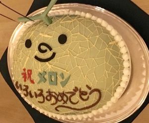 ↓ いつもの仲間と密談して(笑)用意した特大メロンケーキ