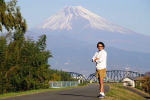 富士山を背にした短パンさんの写真。撮影したのは、伊豆の国市に住むすぎちゃんこと杉山雅一さんです。