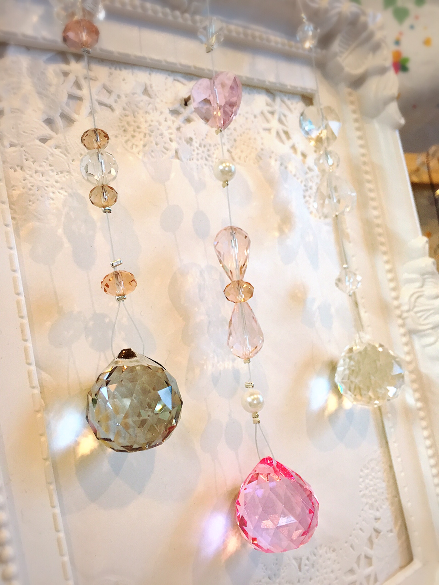 ↓ これがサンキャッチャー お日様の光をキャッチして部屋の中に虹色の光を反射させます