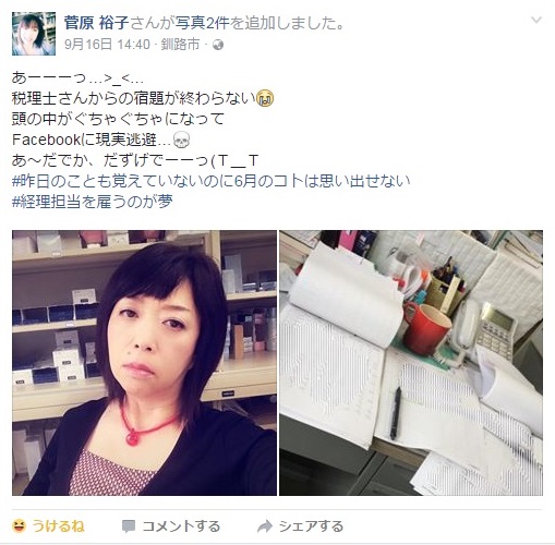 たまった経理書類を整理する時期が来ると、いつもこんな顔になっちゃう…