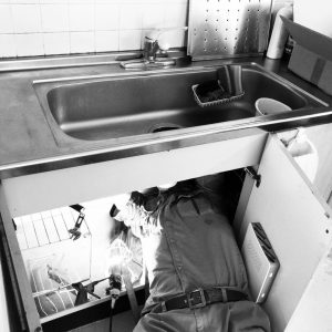 『でんきの御用聞き』ゆうきゃんが、台所の水漏れ修理をしてる現場写真です。実際に作業している姿って説得力ありますね。この写真を見た瞬間、彼になら頼めるんじゃない?頼みたい!って思ったんですから。