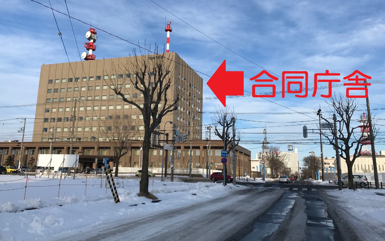 国道38号線を宝町・寿町方面(帯広方面)から浪花町に向かって走ってくると、左手に国の合同庁舎が見えてきます