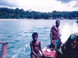 父は車から飛び降りて左右を見渡しますが、目指すカウプがどの方向にあるのか分からないと言います。その時でした。沖合にいた一艘のカヌーが近寄ってきて、乗っていた一人の青年が降りてきたのです。