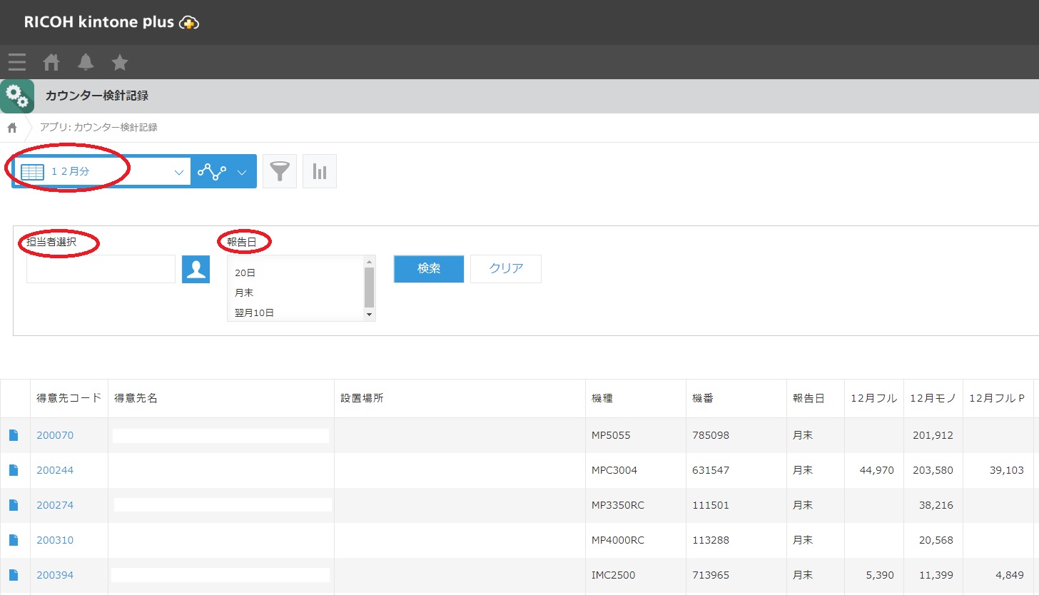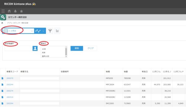 ↓「月」「営業担当」「報告日」で検索可能