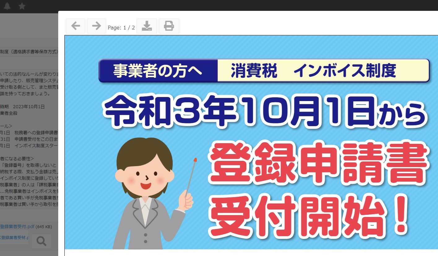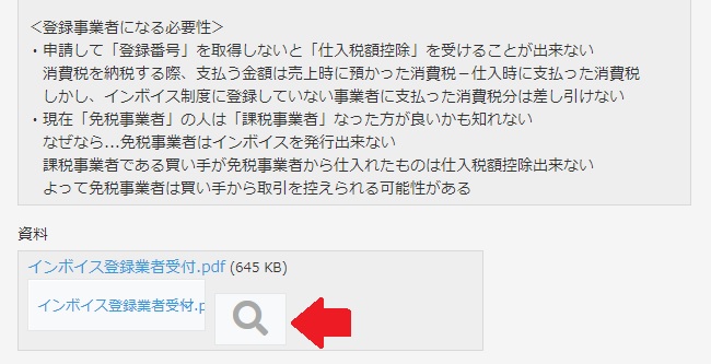 添付ファイルの内容を見たいときは書類名の後ろにある虫メガネマークをクリックするだけ!