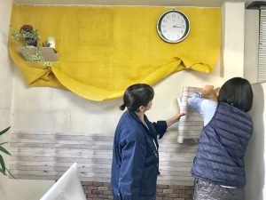 シールタイプの壁紙でオフィスの雰囲気を明るく楽しく