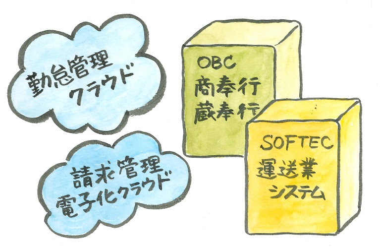 ソフテック社の運送業向けソフト「一番星」、ベースシステム社の自動車整備業向けソフト「モータージム」、介護事業所向けソフト、DSブランド社の企業ホームページ作成ソフト「おりこうブログ」も取り扱っています。