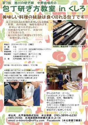 丸甲金物株式会社さんとの共催で、7回目となる包丁研ぎ方教室を行います。 会場はアシスト2階のギャラリー&レンタルスペース『つながり空間まめ』です。